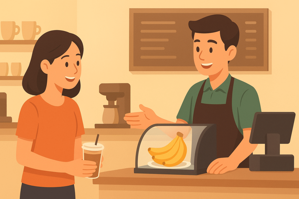 - Di Kedai Kopi: Pelanggan memesan segelas Es Kopi Susu. Kasir bisa bertanya, “Mau sekalian coba pisang goreng baru kami, Kak? Cocok banget buat teman ngopi.”